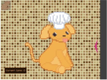Pet your pup get coins, spend those coins to spin for food prepared by your puppy!